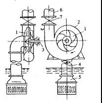 泵的種類很多,以轉(zhuǎn)換能量的方式來分,通常分為有轉(zhuǎn)子泵和無轉(zhuǎn)子泵兩種。前一類是靠高速旋轉(zhuǎn)或往復(fù)運(yùn)動(dòng)的轉(zhuǎn)子把動(dòng)力機(jī)的機(jī)械能量轉(zhuǎn)變?yōu)樘嵘驂核土黧w的能量,如葉片泵、容積泵、漩渦泵;后一類則是靠工作流體把工作能量轉(zhuǎn)換為提升或壓送流體的能量,如水錘泵、射流泵、內(nèi)燃泵、空氣揚(yáng)水機(jī)等。但在農(nóng)業(yè)排灌、排澇工作中,用得多的還是葉片泵。