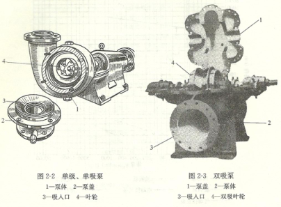 1)具有水平接縫的泵(中開式)——通過泵軸中心線的水平面上開有泵體接縫的泵(圖2-3)。