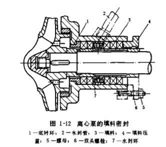 環(huán),環(huán)上開有若干小孔,水封環(huán)對準(zhǔn)水封管。水泵運(yùn)行時(shí),泵內(nèi)壓力較高的水,通過水封