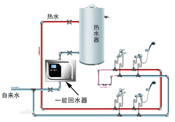 在距離熱水器遠(yuǎn)端的用水端加裝一個(gè)回水管,同時(shí)加裝一個(gè)溫度感應(yīng)裝置和閥門。當(dāng)我們用水的時(shí)候打開水龍頭,通過溫度感應(yīng)裝置感應(yīng),若是冷水,則打開閥門,讓冷水經(jīng)過回水管流入熱水器進(jìn)行二次加熱;當(dāng)溫度感應(yīng)裝置感應(yīng)到熱水來了之后,立馬關(guān)閉閥門,水龍頭就流出了熱水。